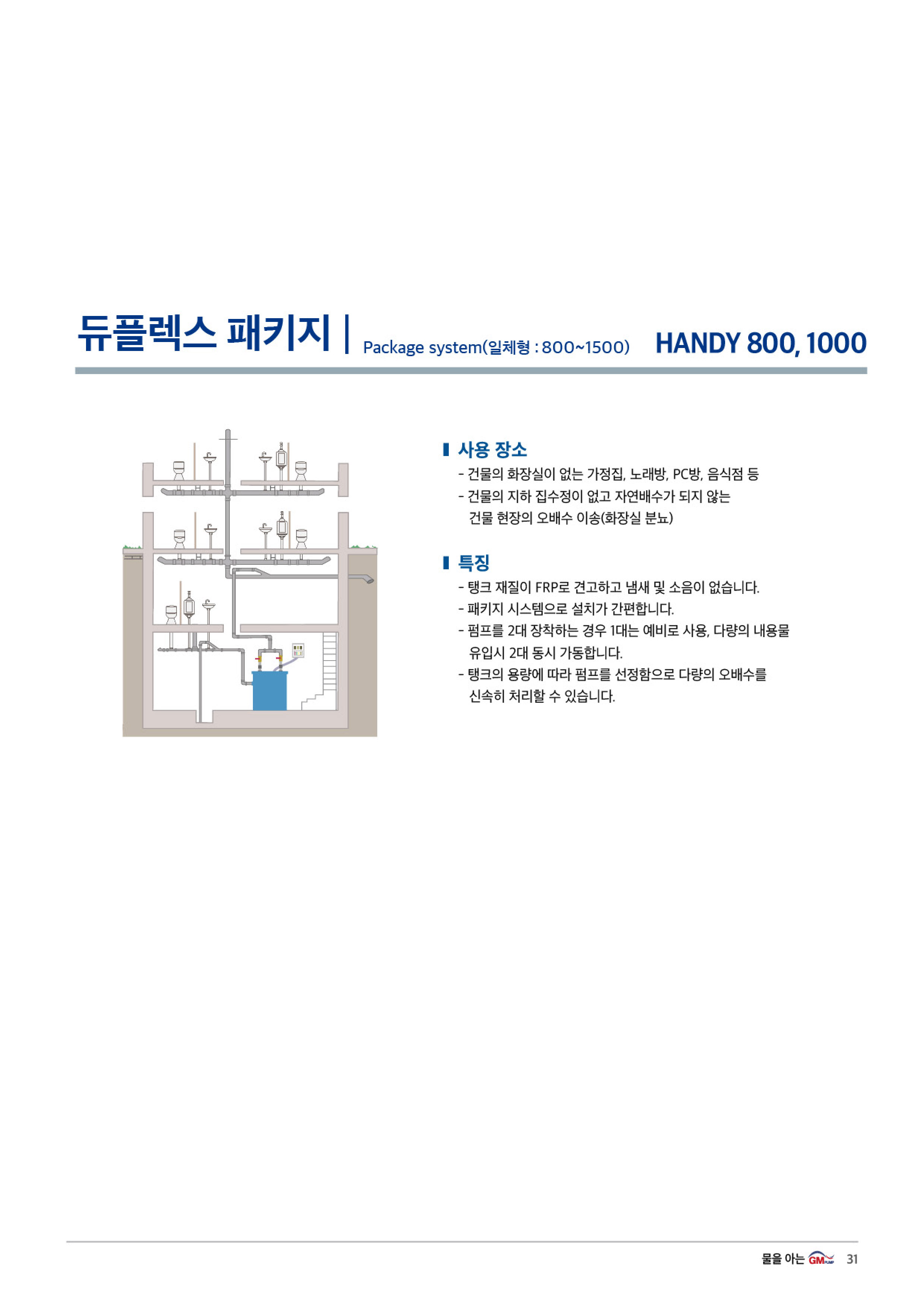 *탱크의 용량에 따라 펌프를 선정함으로 다량의 오배수를 신속하게 처리할 수 있습니다.